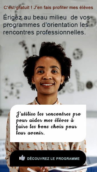 Elle consiste à faire entrer dans vos classes des professionnel(le)s. Grâce à eux , vous abordez le parcours avenir et le sujet de l'orientation dès la cinquième en faisant intervenir nos messagers dans vos classes, en visioconférence ou en présentiel. Quel que soit votre lieu de vie sur le territoire national, JobToSee met à votre disposition des membres de tous métiers et secteurs d’activité de la communauté JobToSienne pour fournir une égalité des chances à vos élèves dans la création d'un réseau et la découverte de métiers inspirants. Prenez contact avec nos messagers (ambassadeurs) en quelques clics pour les inviter à partager leur expérience avec votre classe et susciter des vocations.